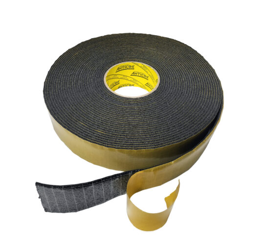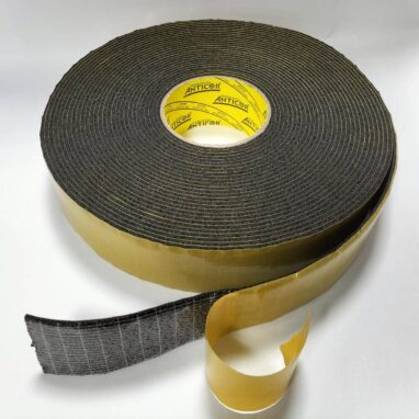 Single-sided adhesive PREMIUM synthetic rubber foam reinforced with polyester mesh.