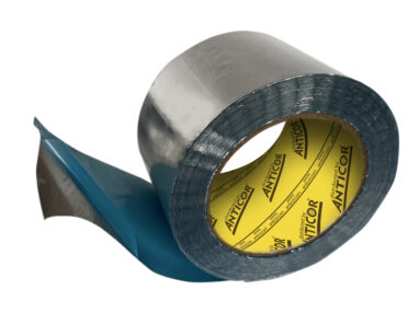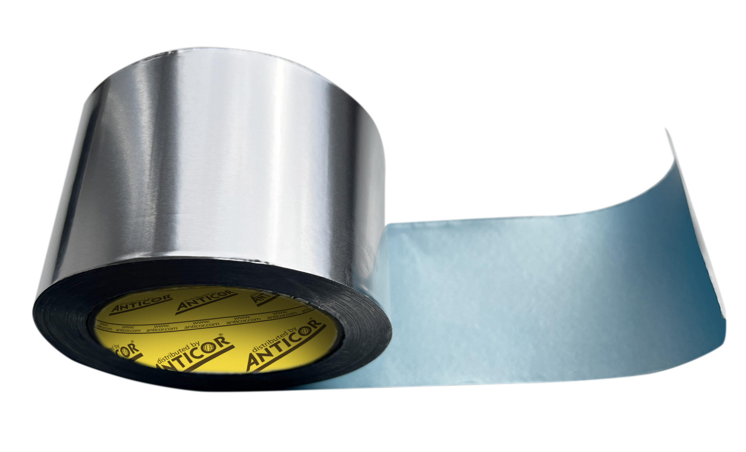Utility grade aluminium foil tape, combined with a high performance solvent acrylic adhesive, protected by a blue polyethylene foil. Blue PE liner, easy recycling & environment friendly. Remains in place in low temperature as long as necessary. Very good adhesion to irregular profiles and surfaces (possible application at -200C).