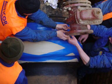 The components of ANTICOR Plast system are produced on the basis of mineral products. They contains also anticorrosion inhibitors, antioxidants, and a package of special additives which improve adhesion to steel and plastics surface. The ANTICOR Plast system has been tested in foreign laboratories and in the Protective Coating Laboratory of the DVGW Cert GmbH, receiving a positive opinion. An additional distinguishing feature of ANTICOR Plast products is a pleasant, delicate smell which increase a comfort during application.