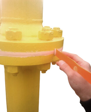 Application by using a gun that allows dosing the material into inter-pipe spaces. In the case of above-ground insulation of flange connections, an aluminum laminate should be applied – Aluminio 374 with a light tension, to provide mechanical protection and protection against UV radiation. Properly engineered technology guarantees anti-corrosion protection of the surface inside the flange connection.