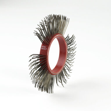 This process uses a specially designed rotary bristle tool. The rotating bristles are DYNAMICALLY TUNED to the power tool, which results in impact and immediate retraction of bristle tips form the corroded surface. The bristle tips are designed to strike the corroded sufrace with kinetic energy that is equivalent to grit blast media, thereby generating a texture and visual cleanliness that mimics the grit blasting process.