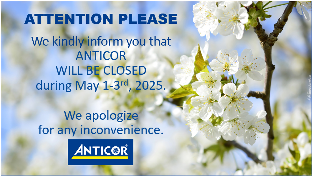 We kindly inform you that ANTICOR WILL BE CLOSED during May 1-3rd, 2025.