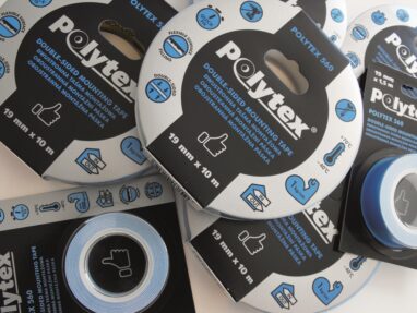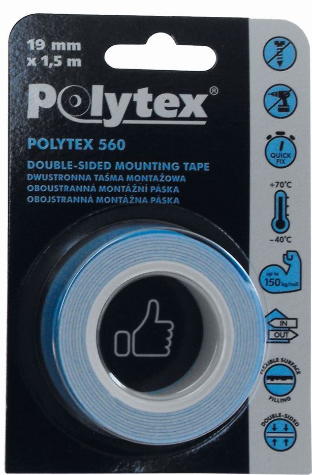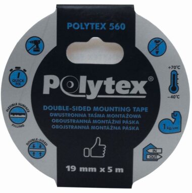 Double-sided mounting tape (PE) with high bonding force. Particularly useful for making advertising, in the furniture industry, building & construction industry, automotive, household, etc. Perfectly combines ceramic, glass, wooden, steel, and most plastics (PVC, PP, PE, PMMA) surfaces. High quality polyolefin foam adapts to rough and uneven surfaces.