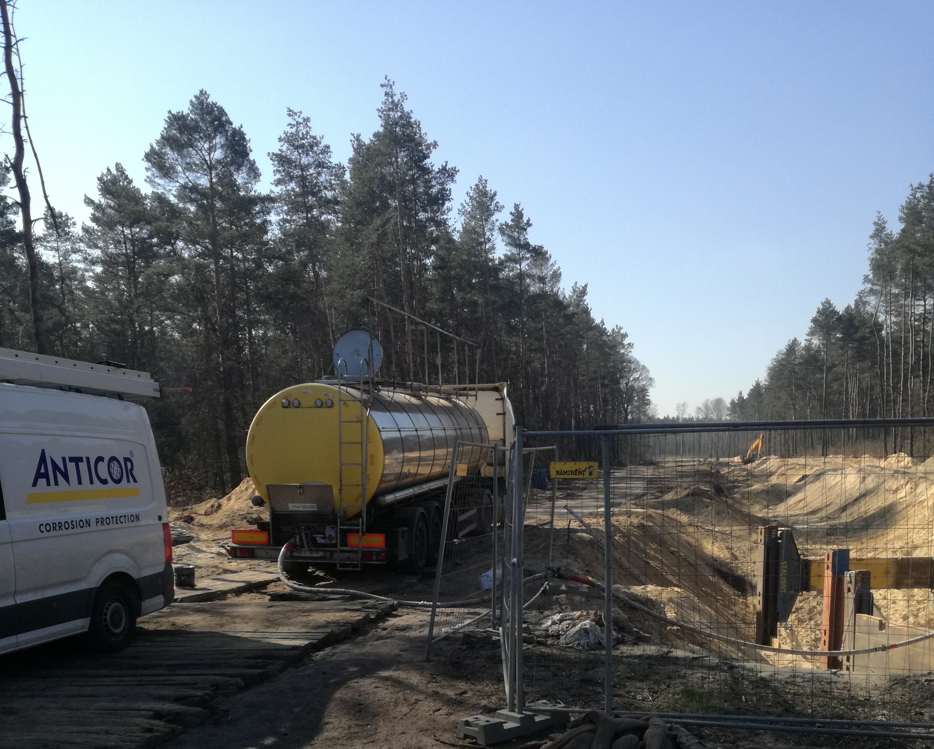 ANTICOR Syntetix Casing Filler is intended for corrosion protection of gas pipeline crossings through terrain obstacles in underground casing pipes, both in the case of newly built and existing pipes. In the case of existing exceedances, where a galvanic connection of the service pipe with the casing pipe was found, the filling mass introduced into the inter-pipe space is a means of inhibiting the corrosion progress of the service pipe. The filling mass is introduced into the inter-tube space to fill it completely. Thanks to this, soil electrolyte cannot get into the inter-pipe space. The ends of the casing pipe should be secured in a tight and durable manner – in the Casing Closure technology, so that the filling mass during application and use after application does not escape into the environment.
