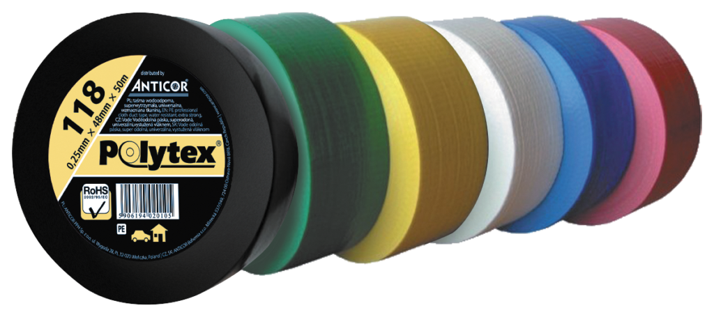Profesjonalna taśma o różnorodnym zastosowaniu. Dostępna w 6 kolorach: czarny, zielony, czerwony, niebieski, biały i żółty.